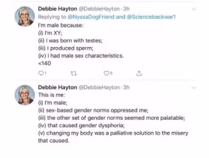 Hayton declares their cis-supremacist ideas and punches down on non-binary people, and those who do not undergo medical transition.