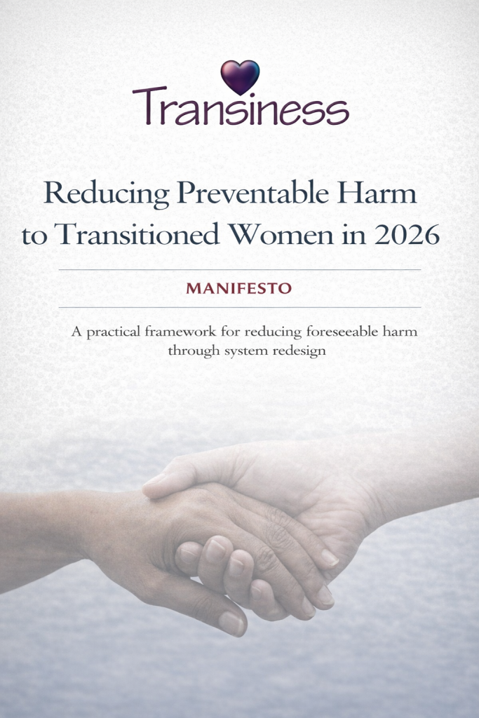 Reducing Preventable Harm to Transitioned Women in 2026 A Transiness manifesto setting out a practical framework for reducing foreseeable harm through system redesign, grounded in human rights, professional responsibility, and material reality.